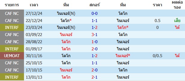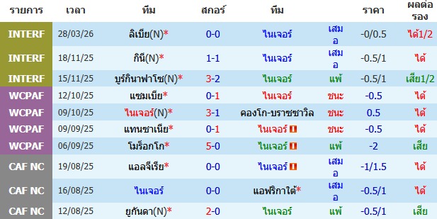 ผลงาน 10 นัดหลังสุดของทีม ไนเจอร์