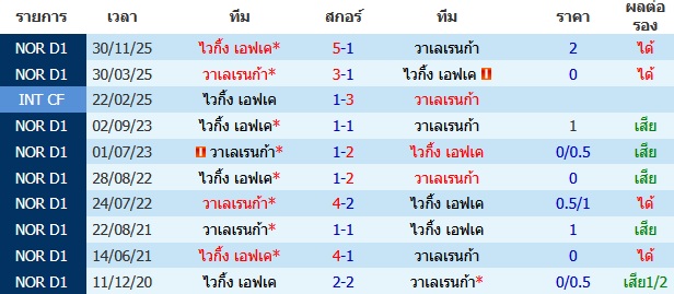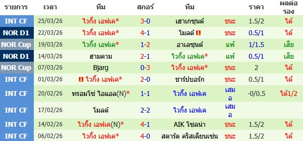ผลงาน 10 นัดหลังสุดของทีม ไวกิ้ง เอฟเค