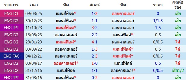 ราคาบอล : ดอนคาสเตอร์ ต่อ 0/0.5