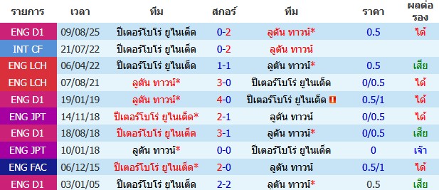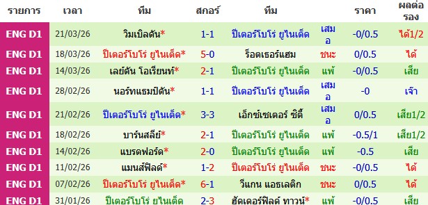 ผลงาน 10 นัดหลังสุดของทีม ปีเตอร์โบโร่