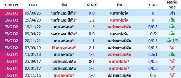 แบรดฟอร์ด VS นอร์ทแธมป์ตัน