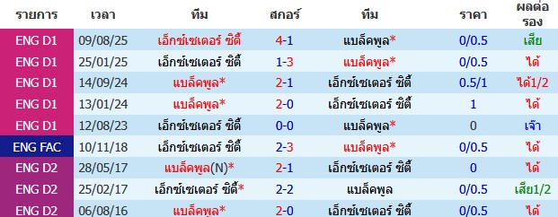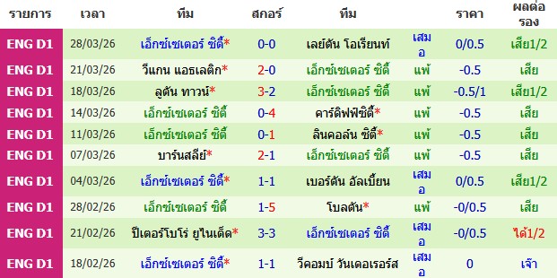 ผลงาน 10 นัดหลังสุดของทีม เอ็กซ์เซเตอร์ ซิตี้
