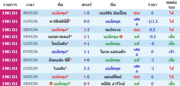 ราคาบอล : แบล็คพูล ต่อ 0/0.5