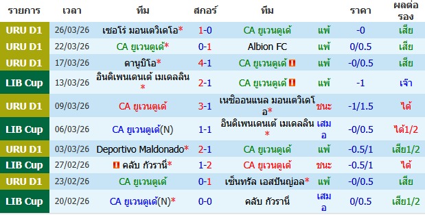 วิเคราะห์บอล อุรุกวัย ดิวิชั่น 1 2025-26 ซีเอ ยูเวนตูเด้ VS บอสตัน ริเวอร์