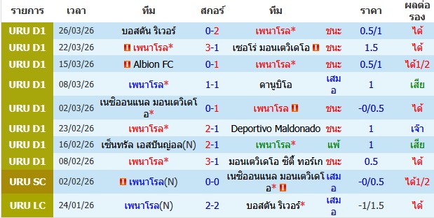 เพนาโรล เตรียมเปิดสนาม Estadio Campeón del Siglo ต้อนรับการมาเยือนของทีม สปอร์ติ้ง มอนเตวิดีโอ โดยเจ้าบ้าน เพนาโรล ภายใต้การนำของกุนซือ ดิเอโก้ อากีร์เร่ กำลังอยู่ในช่วงที่แข็งแกร่งที่สุด โดยปัจจุบันรั้งตำแหน่งจ่าฝูง มี 19 คะแนนจาก 8 นัด ฟอร์มล่าสุดเพิ่งบุกไปเอาชนะ บอสตัน ริเวอร์ 2-0 จุดเด่นอยู่ที่เกมรับที่เสียประตูยากที่สุดในลีก เสียเพียง 6 ประตู และการมีดาวยิงที่ไว้ใจได้ คีย์แมนสำคัญ: มาเทียส อาเรโซ่ กองหน้าที่นำโด่งเป็นดาวซัลโวของทีม 6 ประตู และ เลโอนาร์โด้ เฟร์นานเดซ จอมทัพที่คอยปั้นเกมหลังกองหน้า ทางฝั่ง สปอร์ทติ้ง มอนเตวิดีโอ เดินทางมาเยือนในฐานะผู้ท้าชิงที่น่ากลัวที่สุดในชั่วโมงนี้ ปัจจุบันรั้งอันดับ 2 มี 17 คะแนน พวกเขากำลังอยู่ในช่วงเวลานี้ที่ดี หลังไม่แพ้มาแล้ว 6 เกมติดต่อกันในเกมลีก หากนัดนี้พวกเขาสามารถบุกมาเก็บชัยชนะได้ จะมีแซงจ่าฝูงทันที โดยเกมนี้จะมี ตาริก ฮาบิบ กองหน้าตัวเก่ง 4 ประตู สภาพทีม ไม่มีปัญหาผู้เล่นบาดเจ็บรบกวนในกลุ่มแกนหลัก นี่คือเกมระดับ 5 ดาวของลีกอุรุกวัยในฤดูกาลนี้ เพนาโรล มีความเก๋าและระเบียบวินัยในเกมรับที่ยอดเยี่ยม รวมถึงความได้เปรียบจากการเล่นในรังของตัวเอง อย่างไรก็ตาม สปอร์ติ้ง มอนเตวิดีโอ ในนาทีนี้คือทีมที่เล่นได้ลงตัวที่สุดและมีโมเมนตัมที่ดีเยี่ยมจากการไม่แพ้มาต่อเนื่อง ทำให้มีโอกาสสูงที่เกมจะจบลงด้วยการแบ่งแต้ม