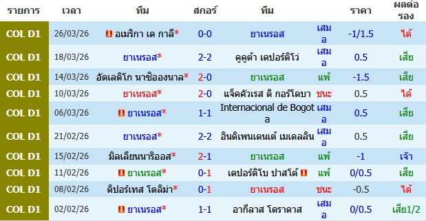 วิเคราะห์บอล โคลัมเบีย ดิวิชั่น 1 2025-26 ลาเนรอส VS อ็องเซ่ กัลดาส
