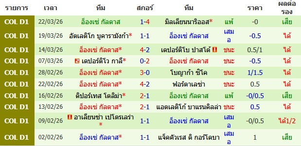 ผลงาน 10 นัดหลังสุดของทีม อ็องเซ่ กัลดาส