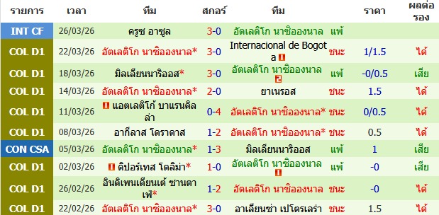 ราคาบอล : แอตเลติโก นาซิอองนาล ต่อ 0/0.5